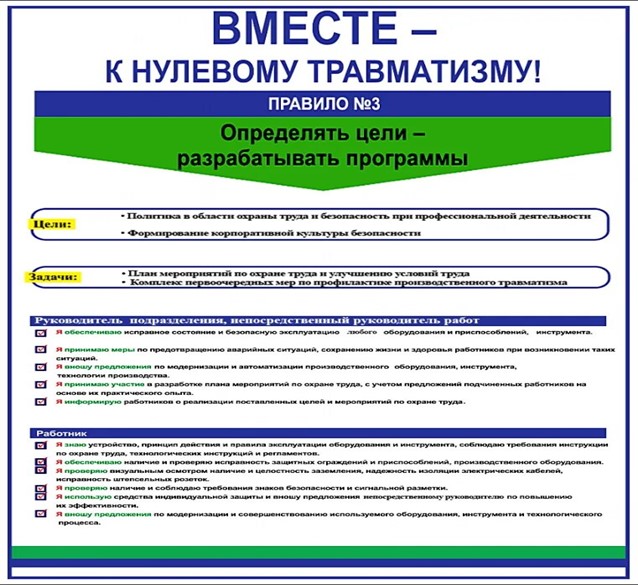 «Нулевой травматизм» — это комплексная система, где ответственность за безопасность лежит не только на руководстве, но и разделяется с каждым работником. Это означает, что мы стремимся не просто соблюдать установленные нормы, но и постоянно искать пути для улучшения, вовлекая в этот процесс всех без исключения.